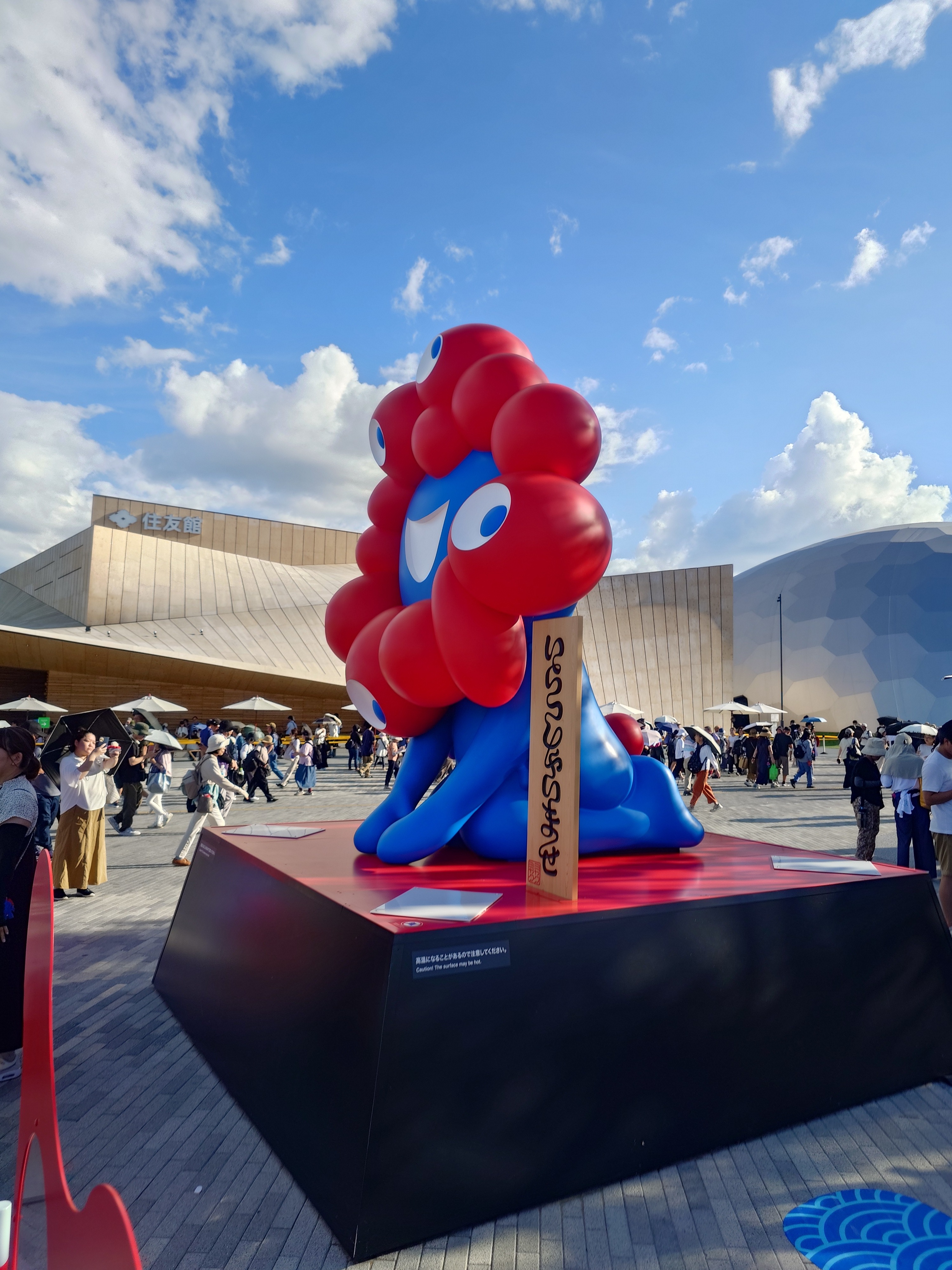中へ入ると巨大ミャクミャクの前で集合写真を撮り、後はそれぞれ自由行動。